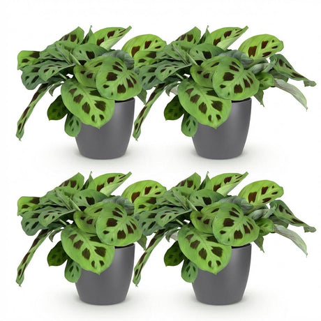 Zebra-PflanzeMaranta Fascinator Kerchoveana - 4 Pflanzen mit grauem Topf