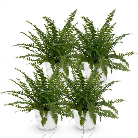 SegelnNephrolepsis Exaltata Green Lady – 4 Pflanzen mit weißem Topf