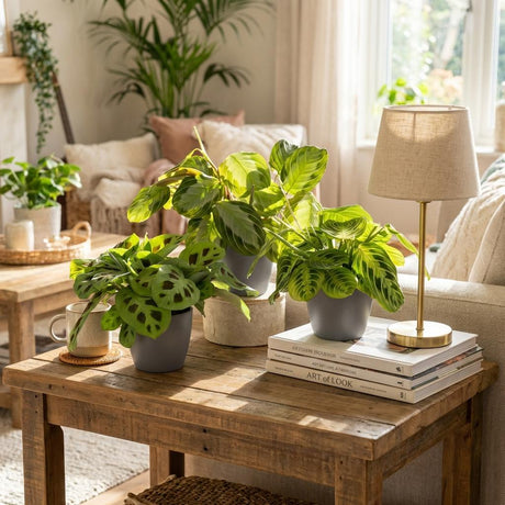 GebetspflanzeMarantha Silverband - Marantha Lemon Lime - Marantha Kerchoveana - 3 Pflanzen im weißen Topf