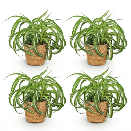 Planta arañaChlorophytum comosum Bonnie - 4 Plantas con Cesta