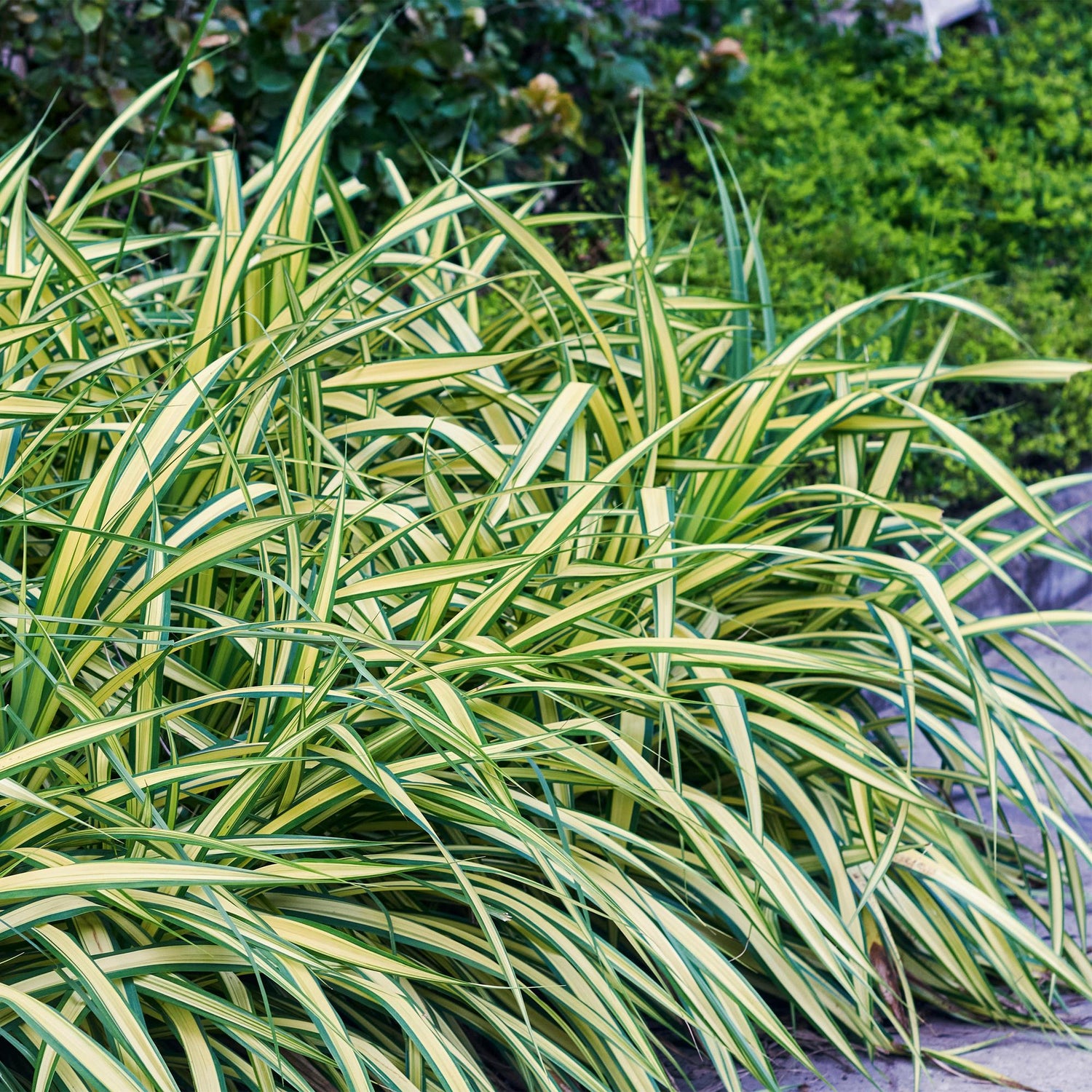 Carex oshimensis ‘Evergold’ es una elegante planta herbácea con un llamativo follaje abigarrado en verde y amarillo dorado. Este atractivo de bajo mantenimiento aporta instantáneamente luz, estructura y sofisticación a arriates, macetas y parterres sombríos. Una elección elegante para quienes desean crear calma y contraste en el jardín durante todo el año.